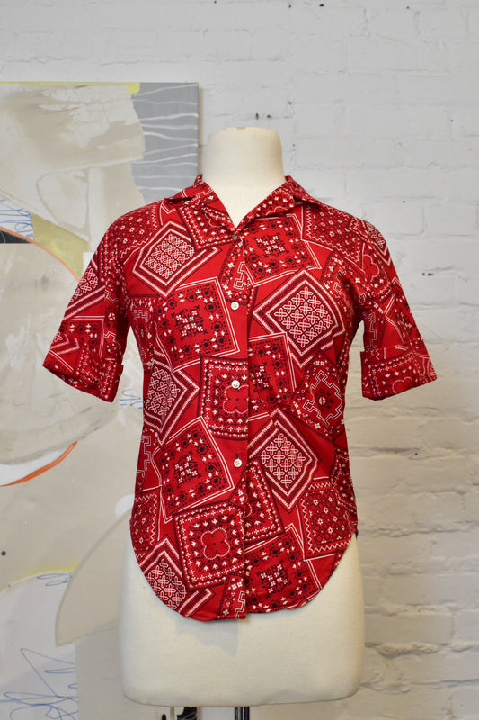 Vintage 60s/70s Carole Sue Red Bandana Print Short Sleeve Shirt