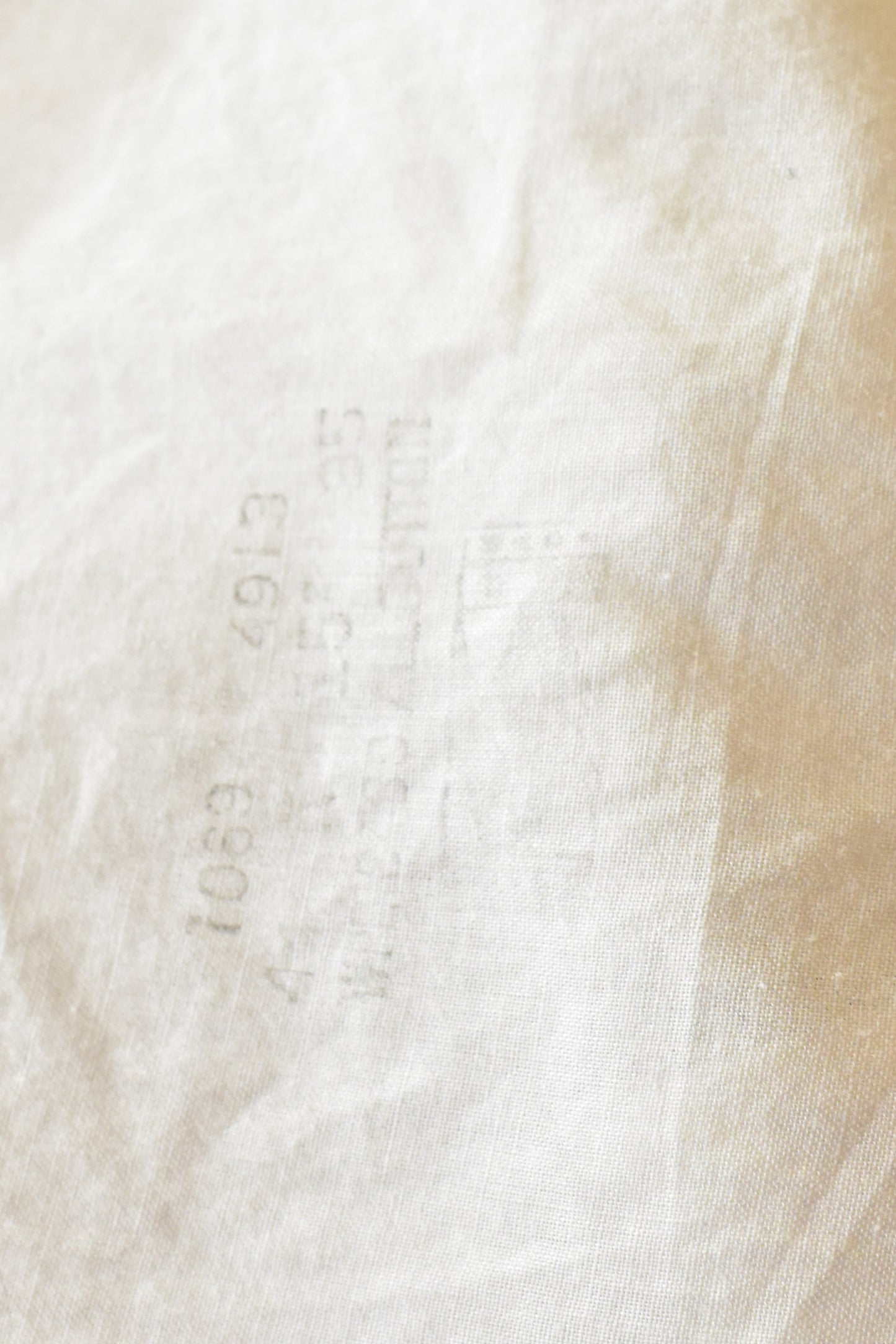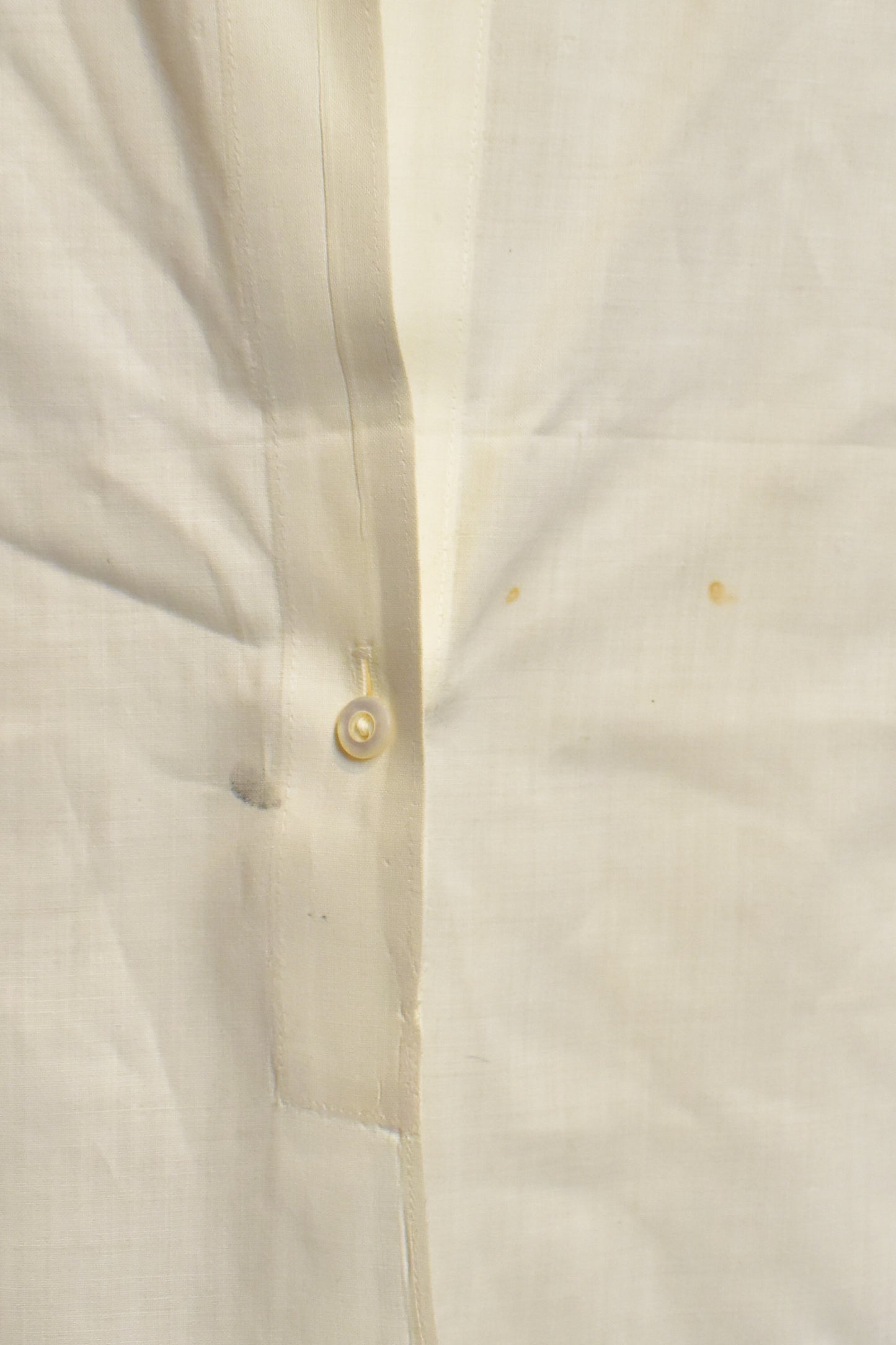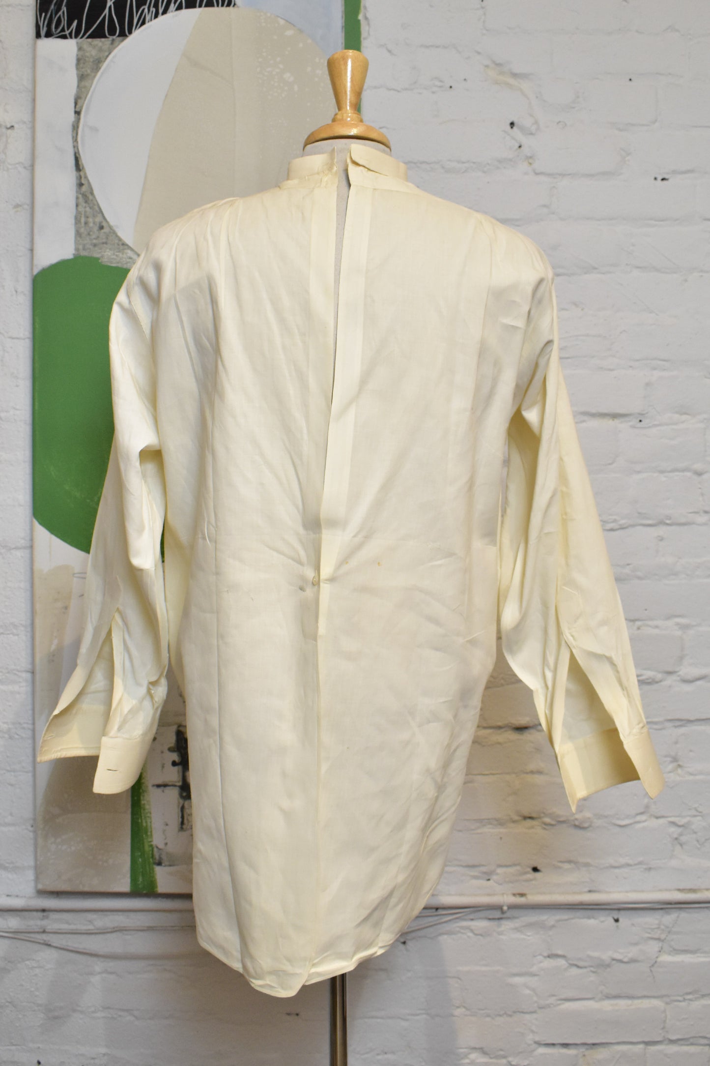 Vintage 30's/40's White Cotton "Arrow" Tuxedo Shirt. Collarless. Single Button Closure Along Back. Bib Chest. Cufflink Wrist Closure.