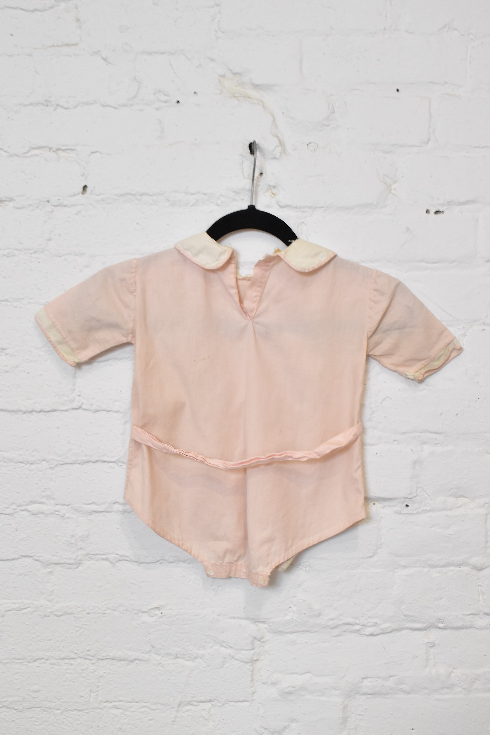 Vintage 1930s Baby Pink Infant Romper. Embroidered Detail. Belted. Button Crotch for Changing.