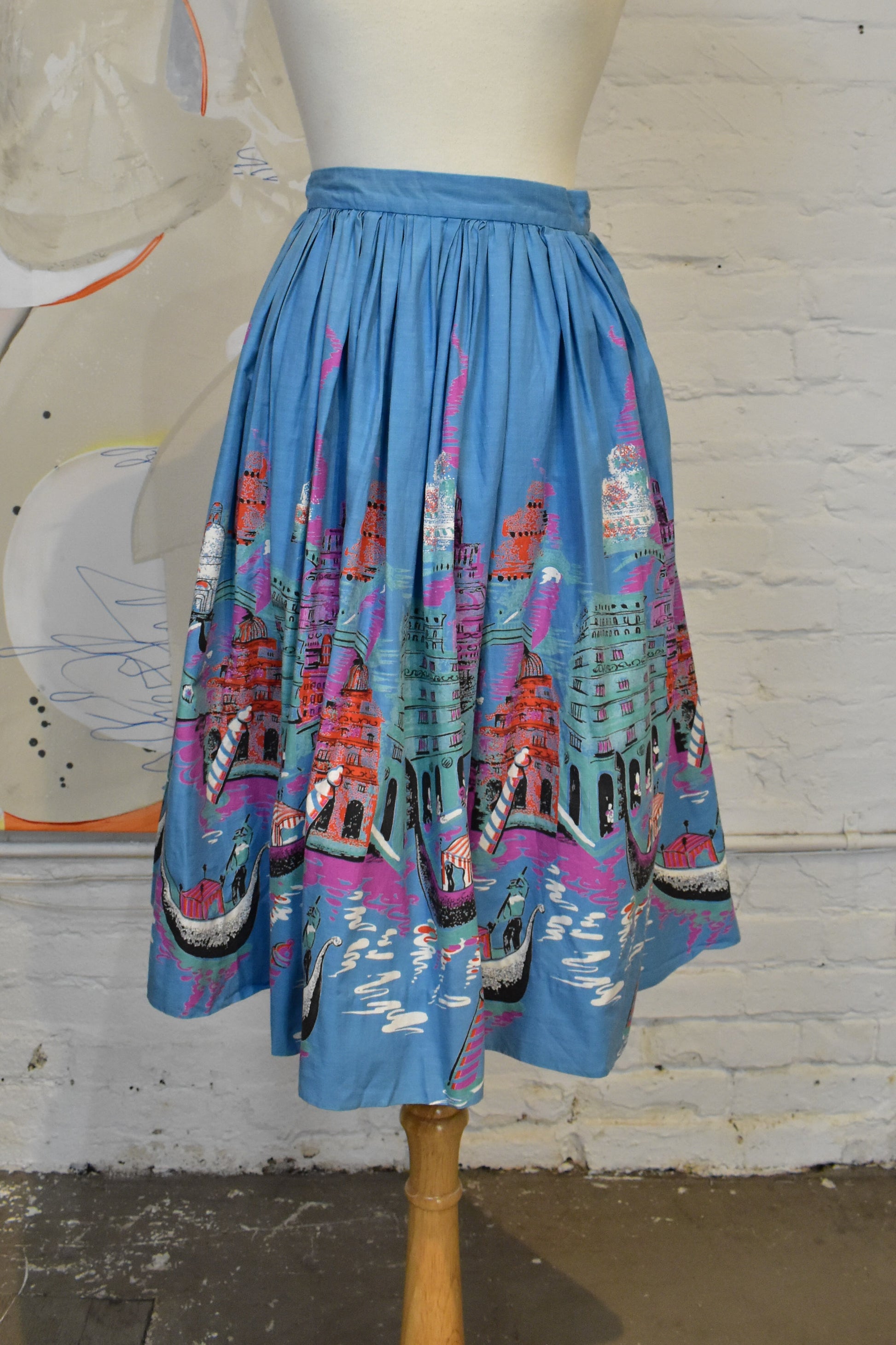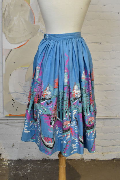 Vintage 1950s Cotton Novelty Venice Souvenir Skirt