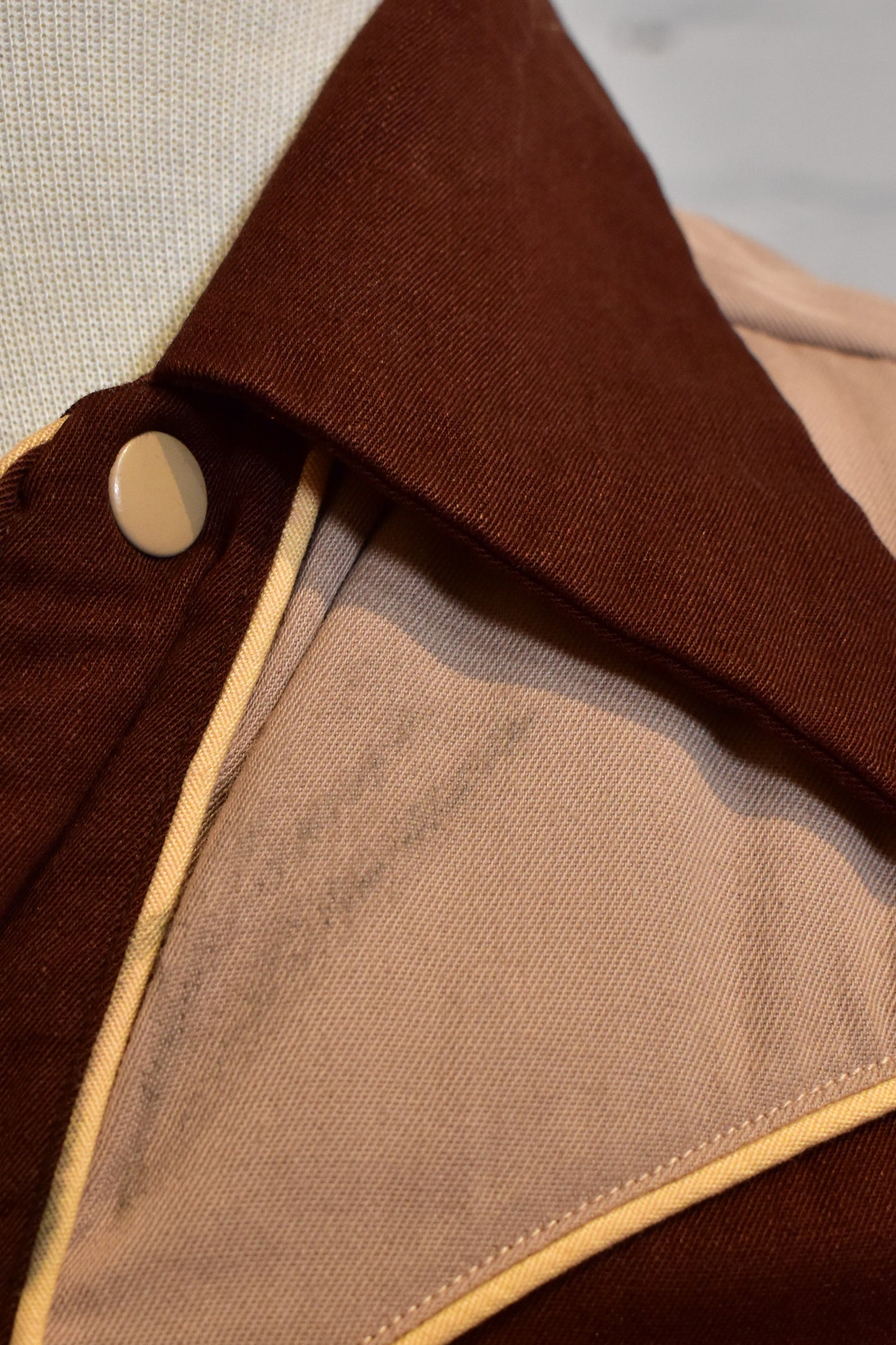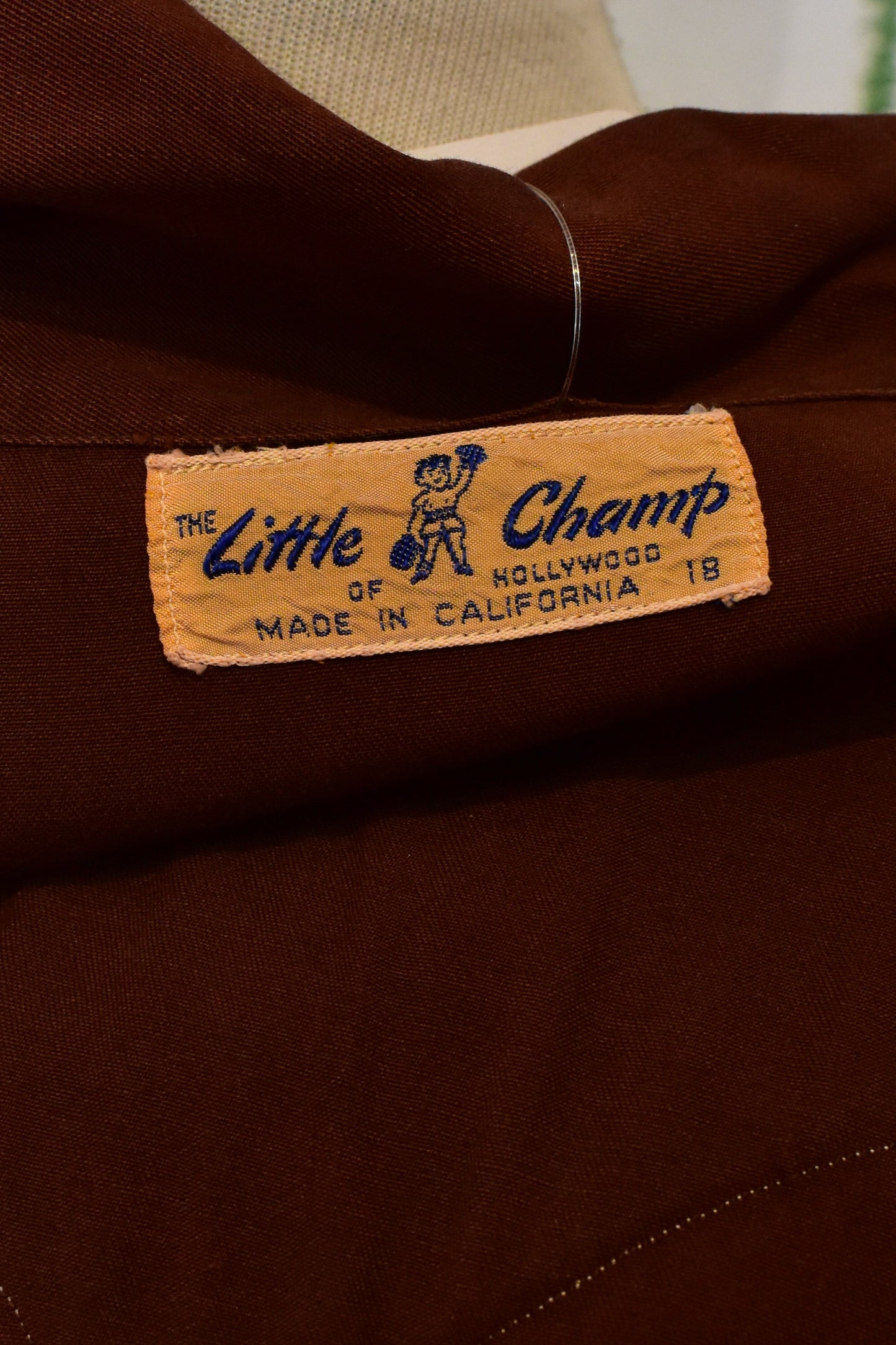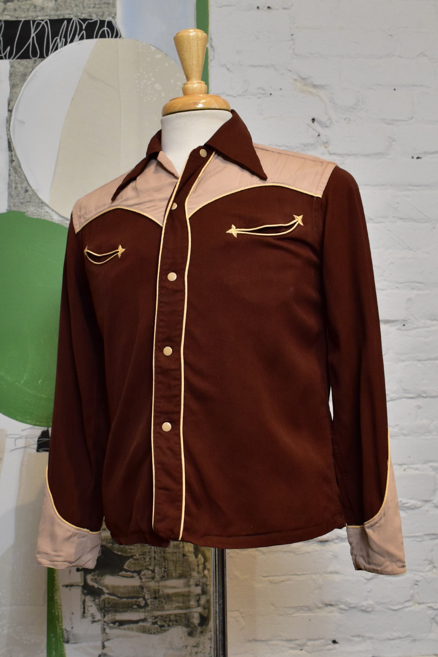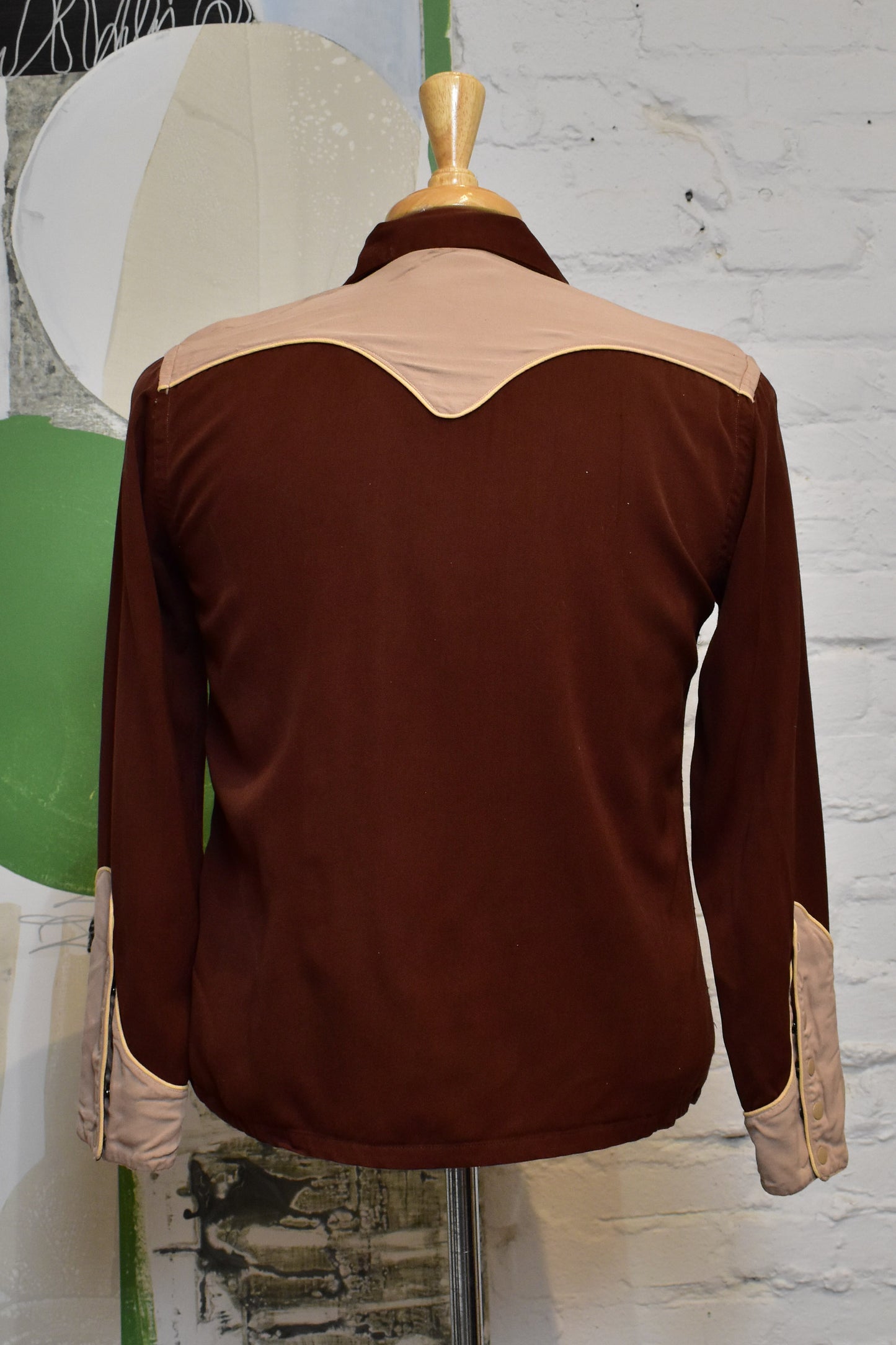 Vintage 1940's/1950's "The Little Champ" Gabardine Western Shirt. Pointed Collar. Two Chest Pockets. Snap Button Closure. Two Tone Brown.