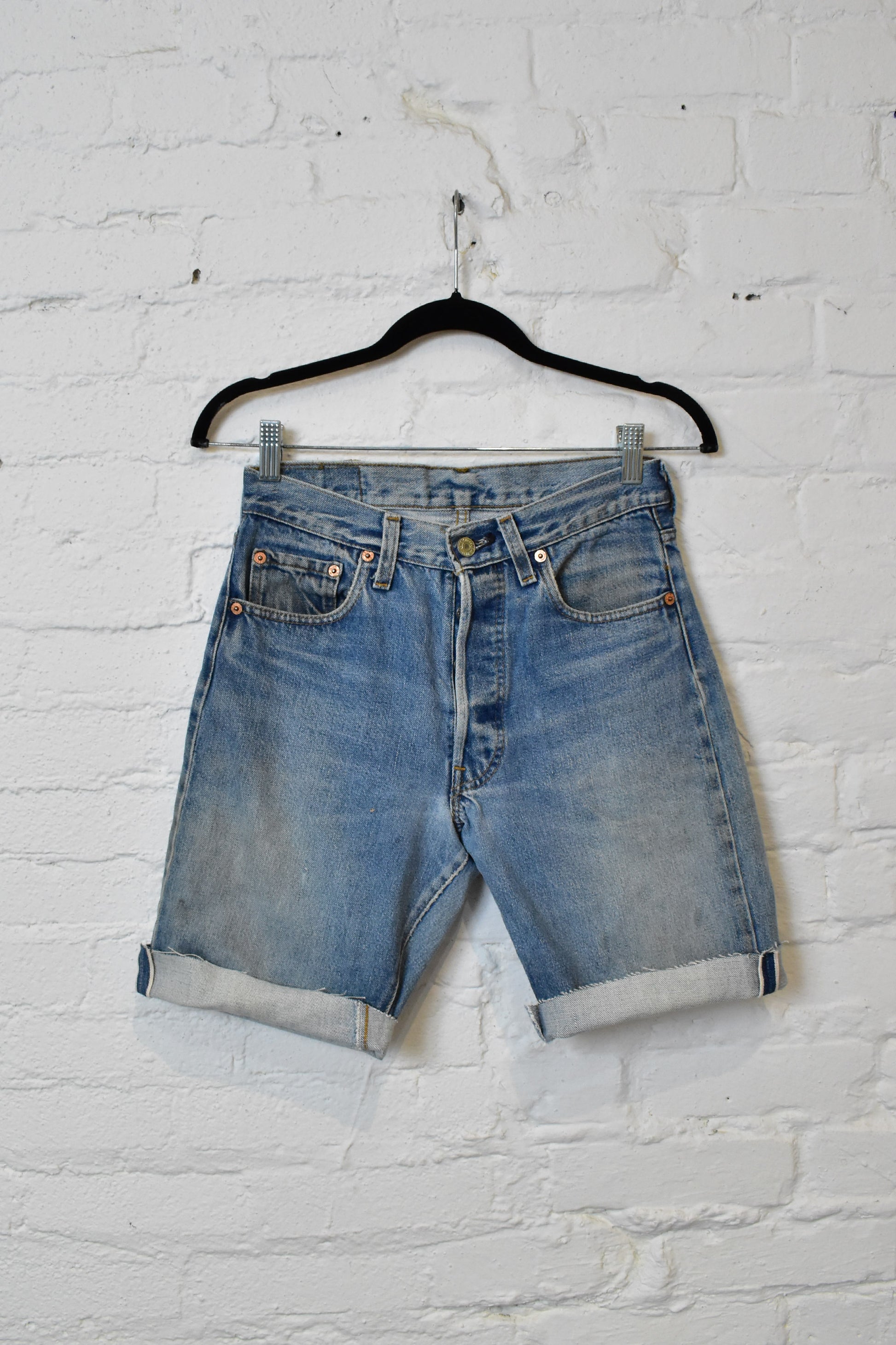 Great Vintage Condition - General wear/fading. Raw hem cutoffs.