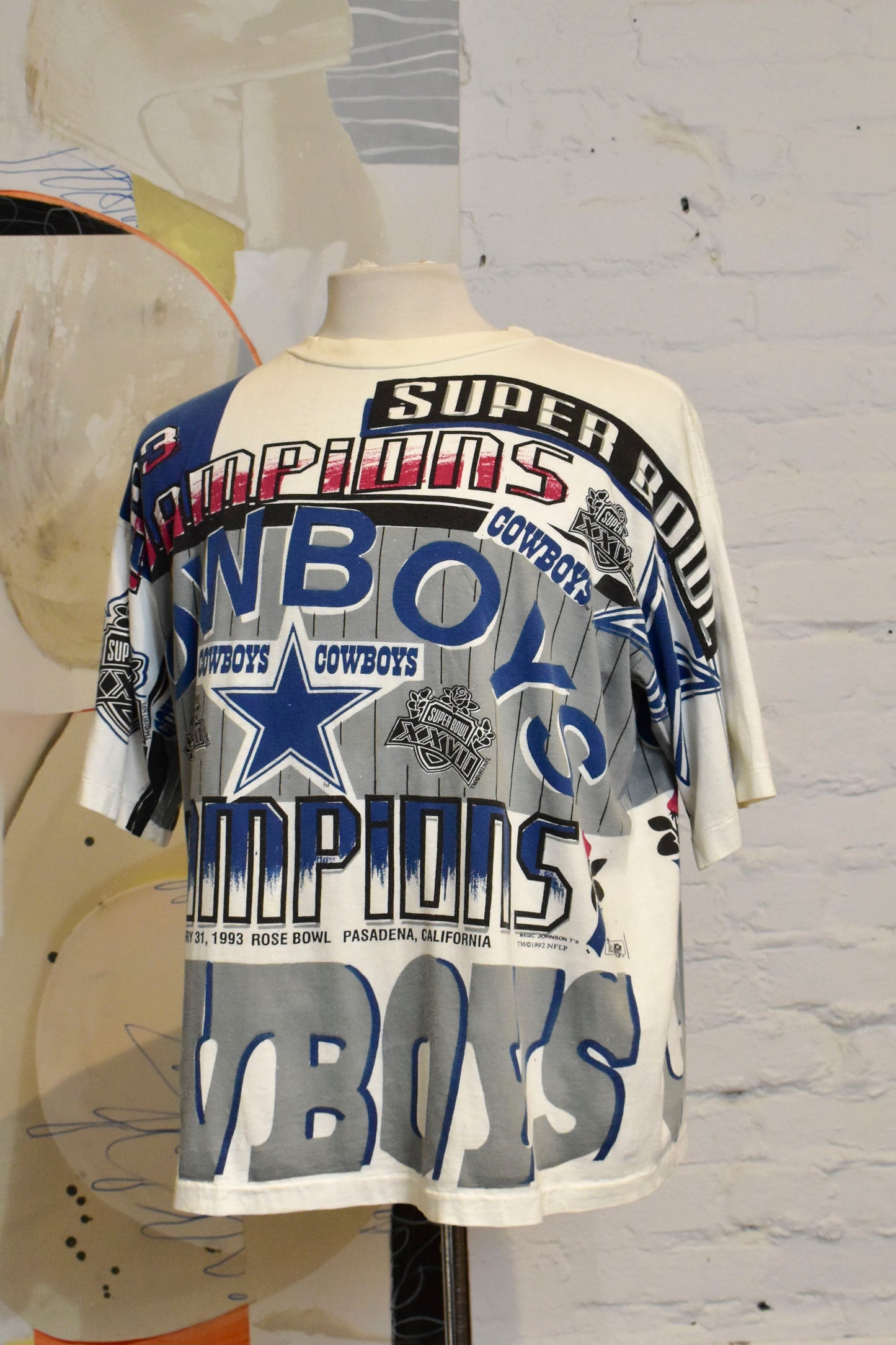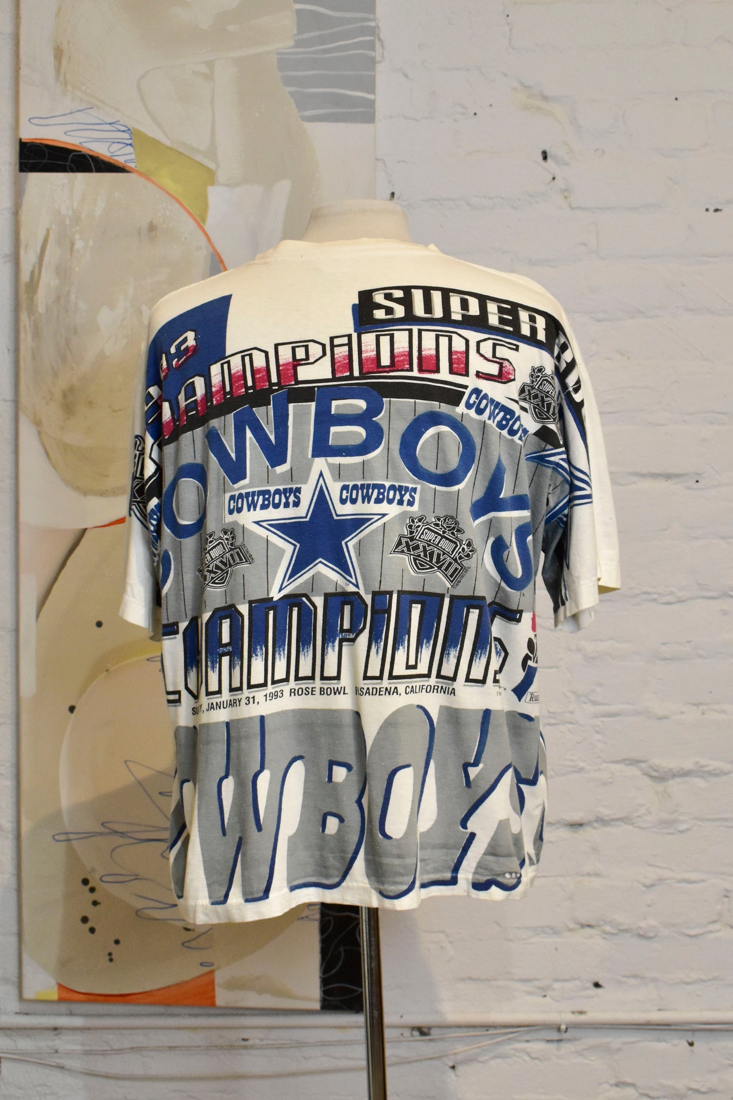 Vintage 1990s "Super Bowl Cowboys Champions" All Over Printed T-shirt.