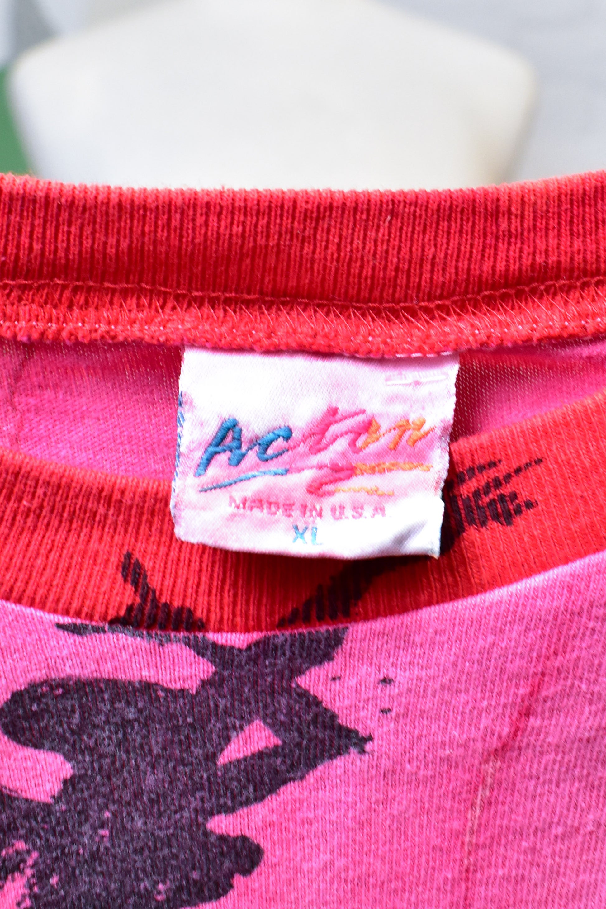 Santana Millenium Angel Graphic T-Shirt. Crewneck. Bold tie-dye pattern with winged figure graphics and logo.