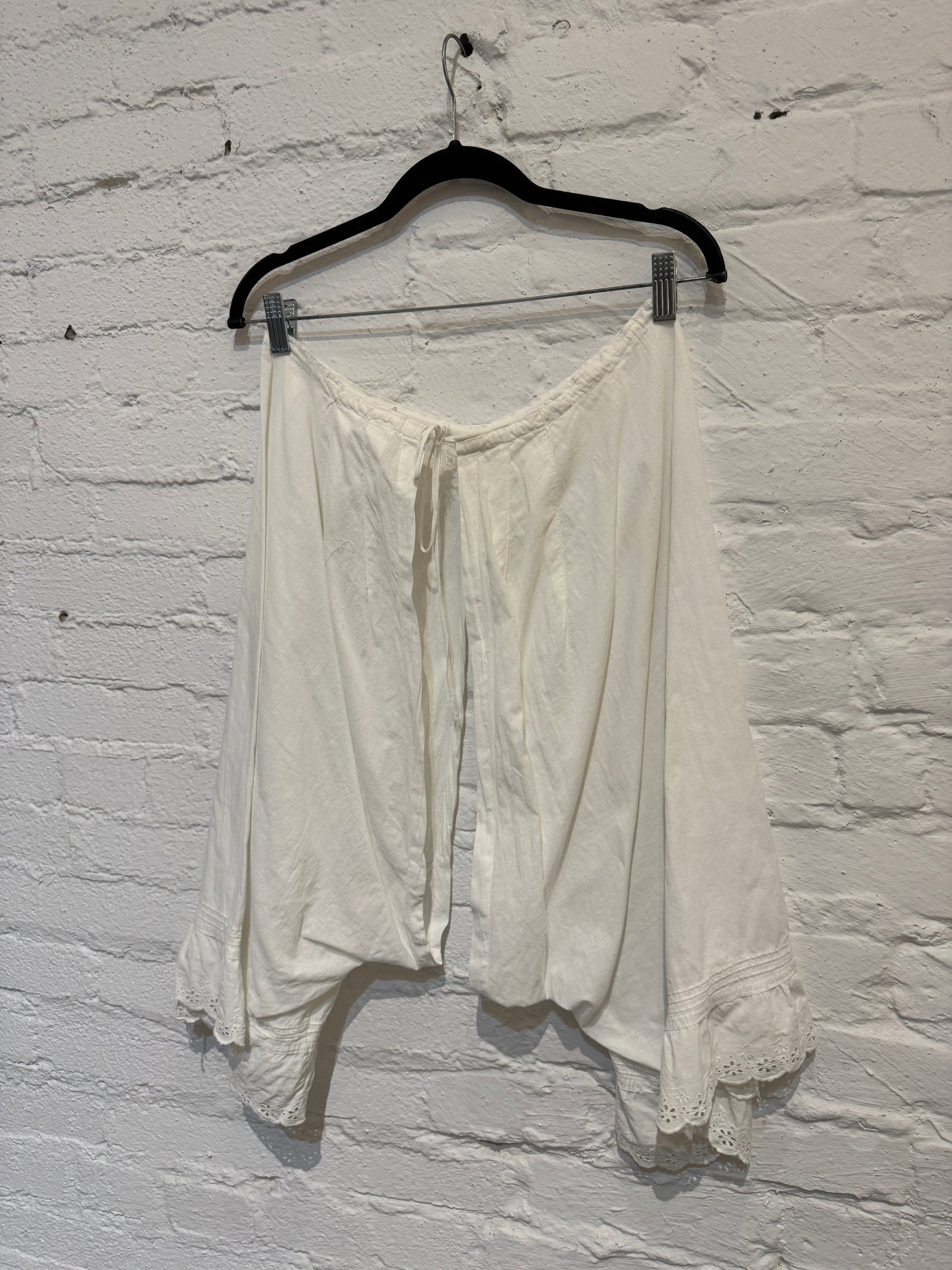 Antique White Eyelet Cotton Bloomers. Waist Tie Along Back. Open Crotch. Pleats and Eyelet Hem.
