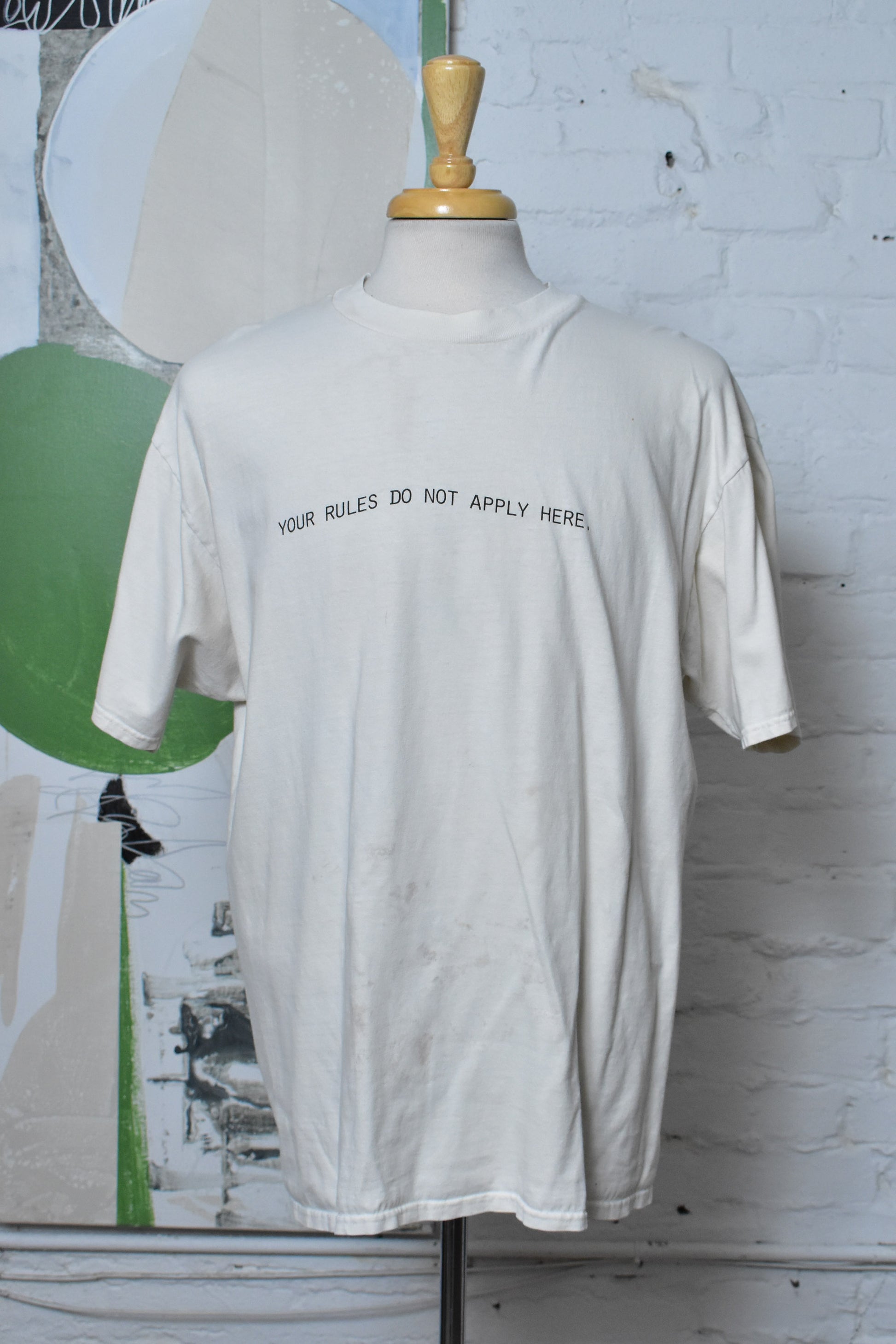 Obsidian SEGA 1997 Video Game Tee. Crewneck. Short sleeves. Large Neon and Black Graphic Along Back. "YOUR RULES DO NOT APPLY HERE." Hanes Beefy Tee Label.