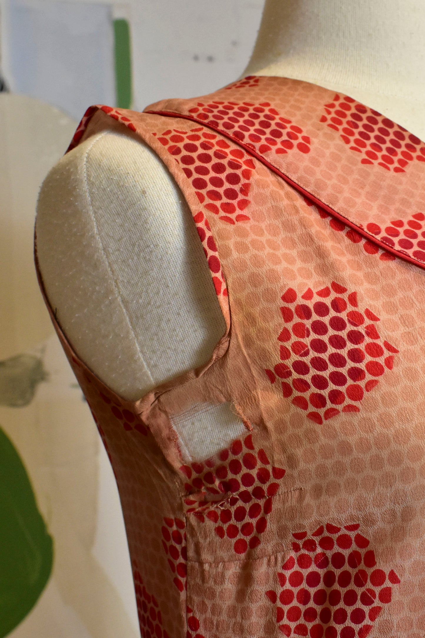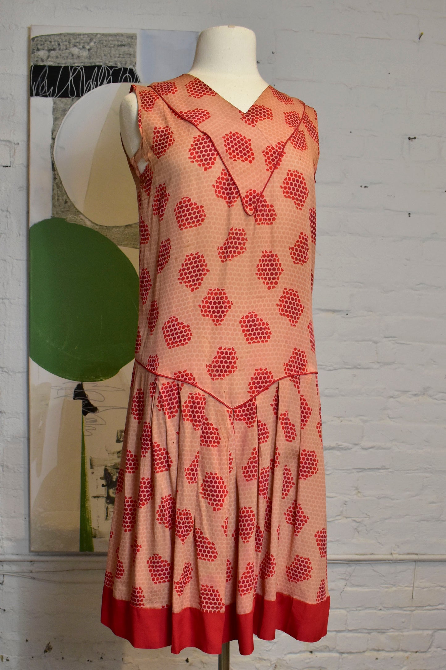 Vintage 1920's Pink and Red Silk Honeycomb Drop Waist Dress