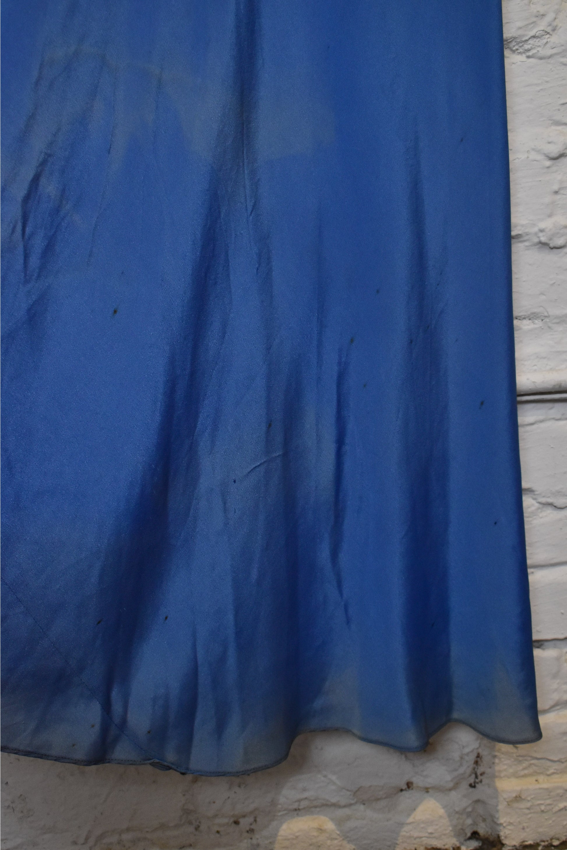 Vintage 1930s Blue Puff Sleeve Maxi Dress With Beaded Trim