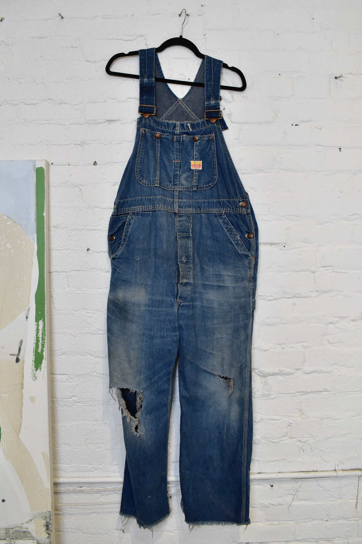 Vintage 1950s Penneys Payday Overalls. Adjustable Straps. Side Button Closure. MultiPockets. Straight Legs. Union Made. Sanforized.