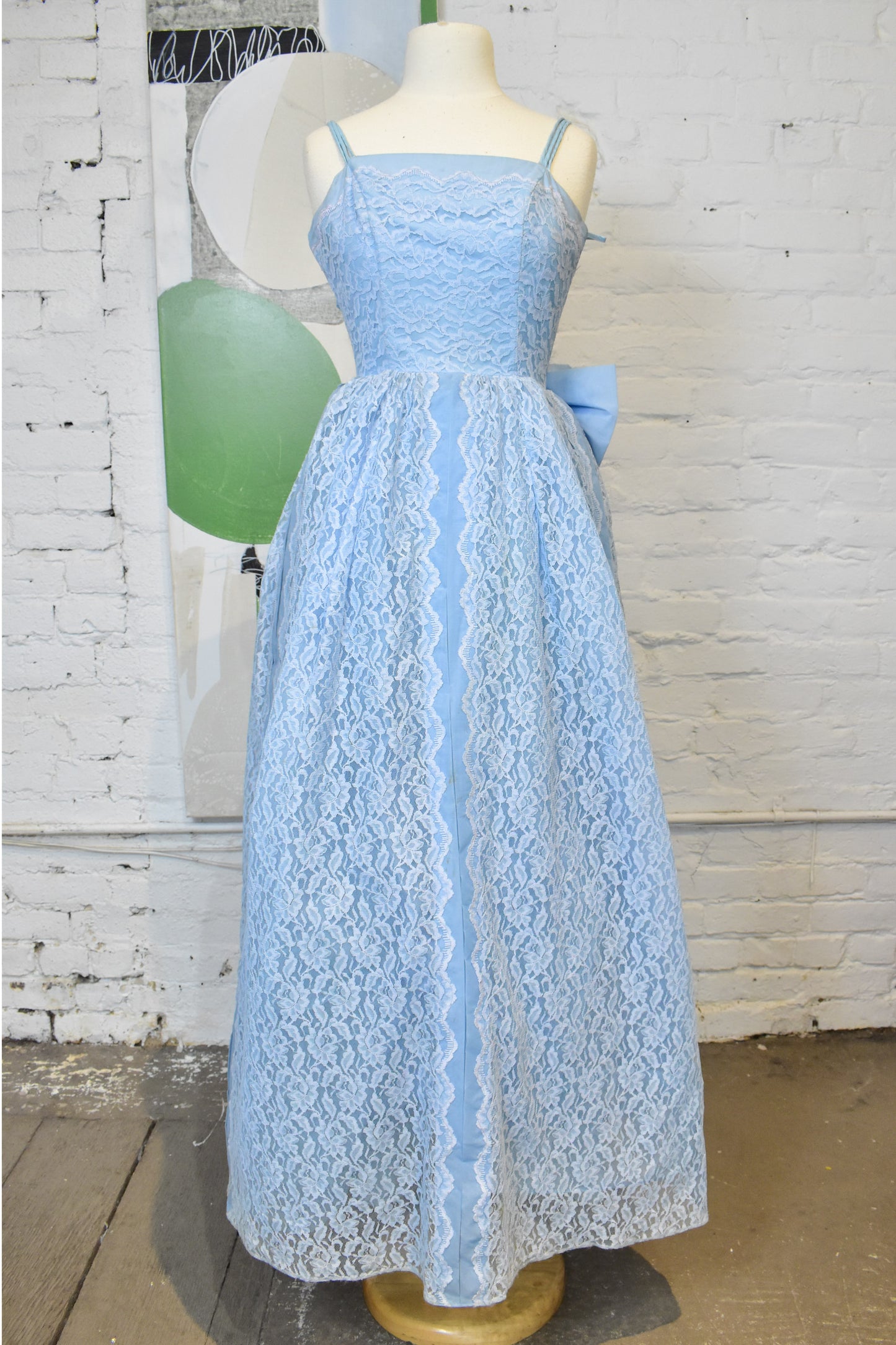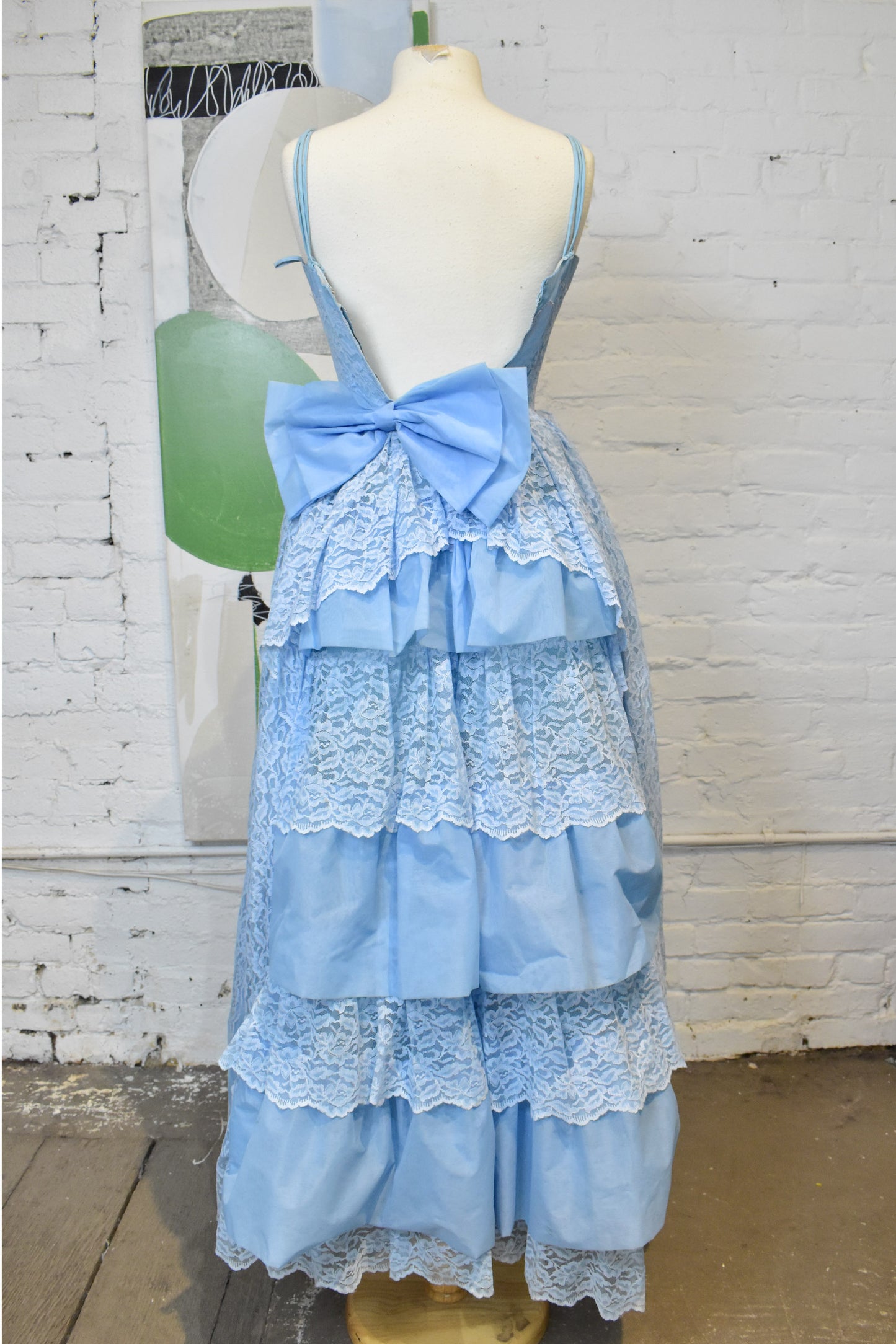 Vintage 1950s Powder Blue Lace Tiered Evening Gown