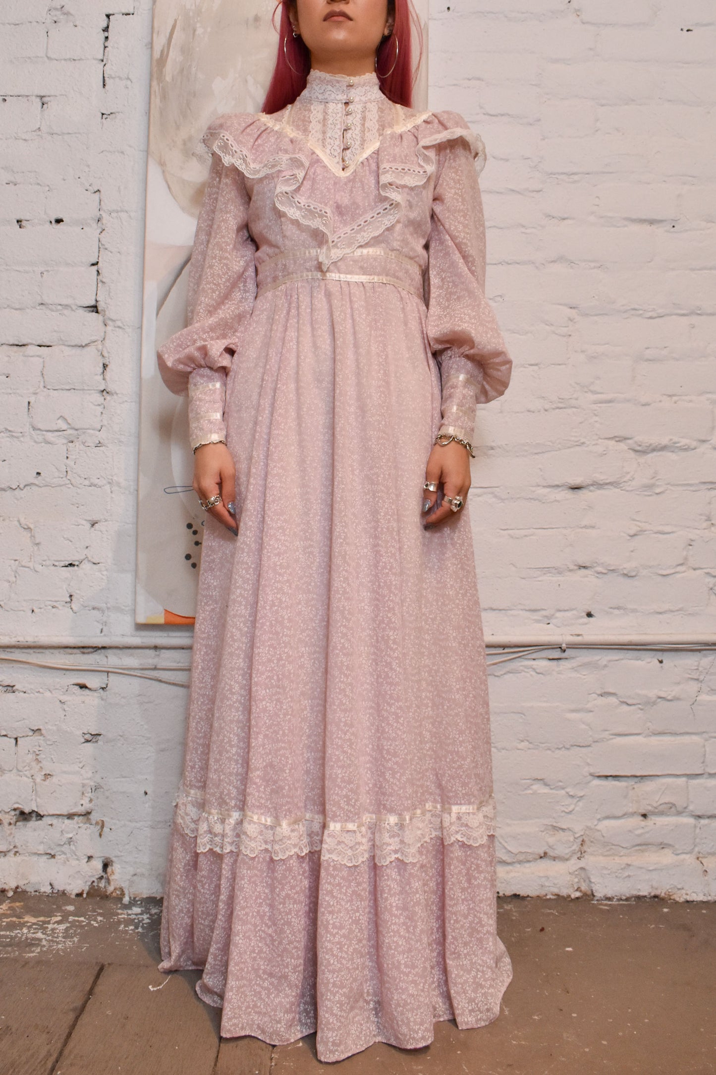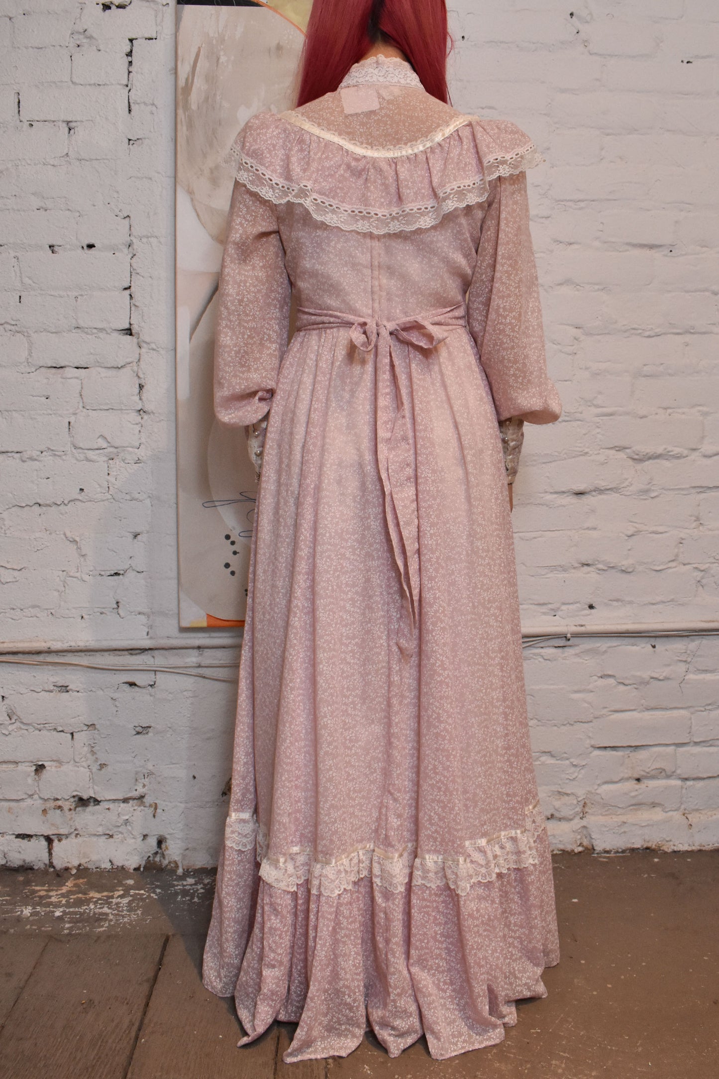 Vintage 1970s "Gunne Sax" Floral Pink Prairie Dress.