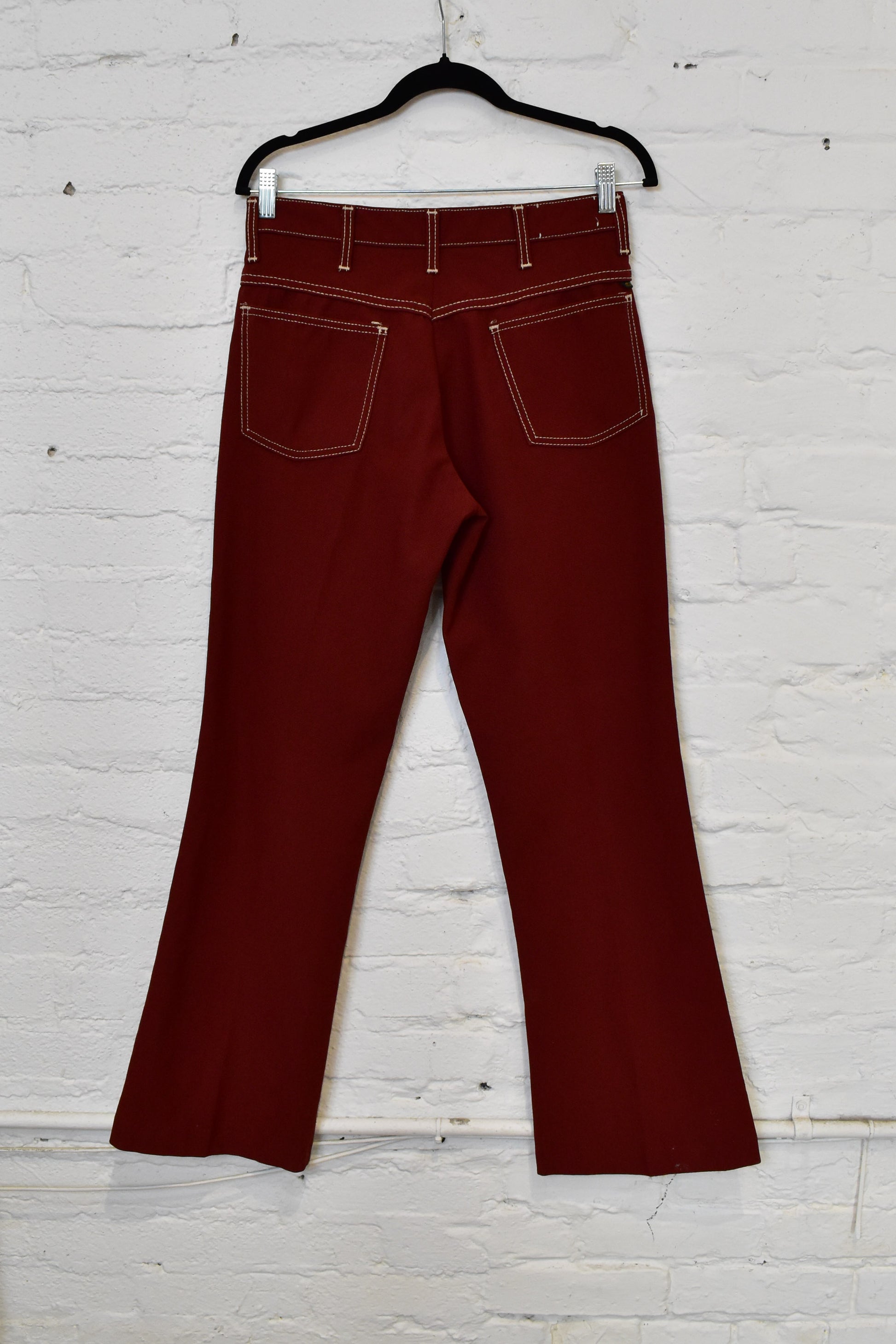 Vintage 1970s Brown 2 Piece Leisure Suit by Farah. Snap Closure Long Sleeve Shirt. Pointed Collar. Two Chest Pockets. Flared Trousers. Four Pockets. Scovill Zipper Fly.
