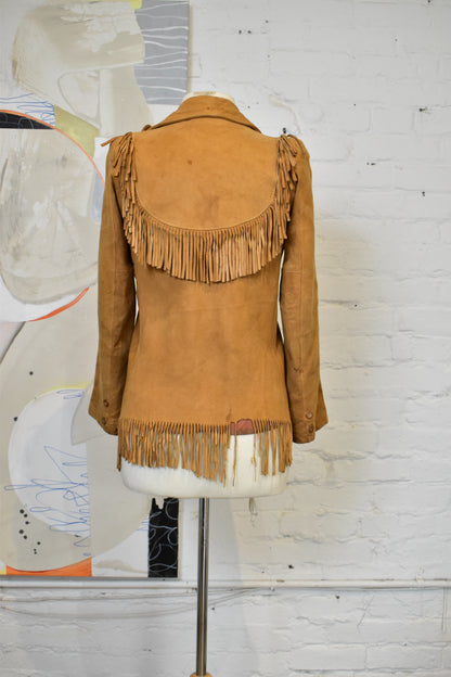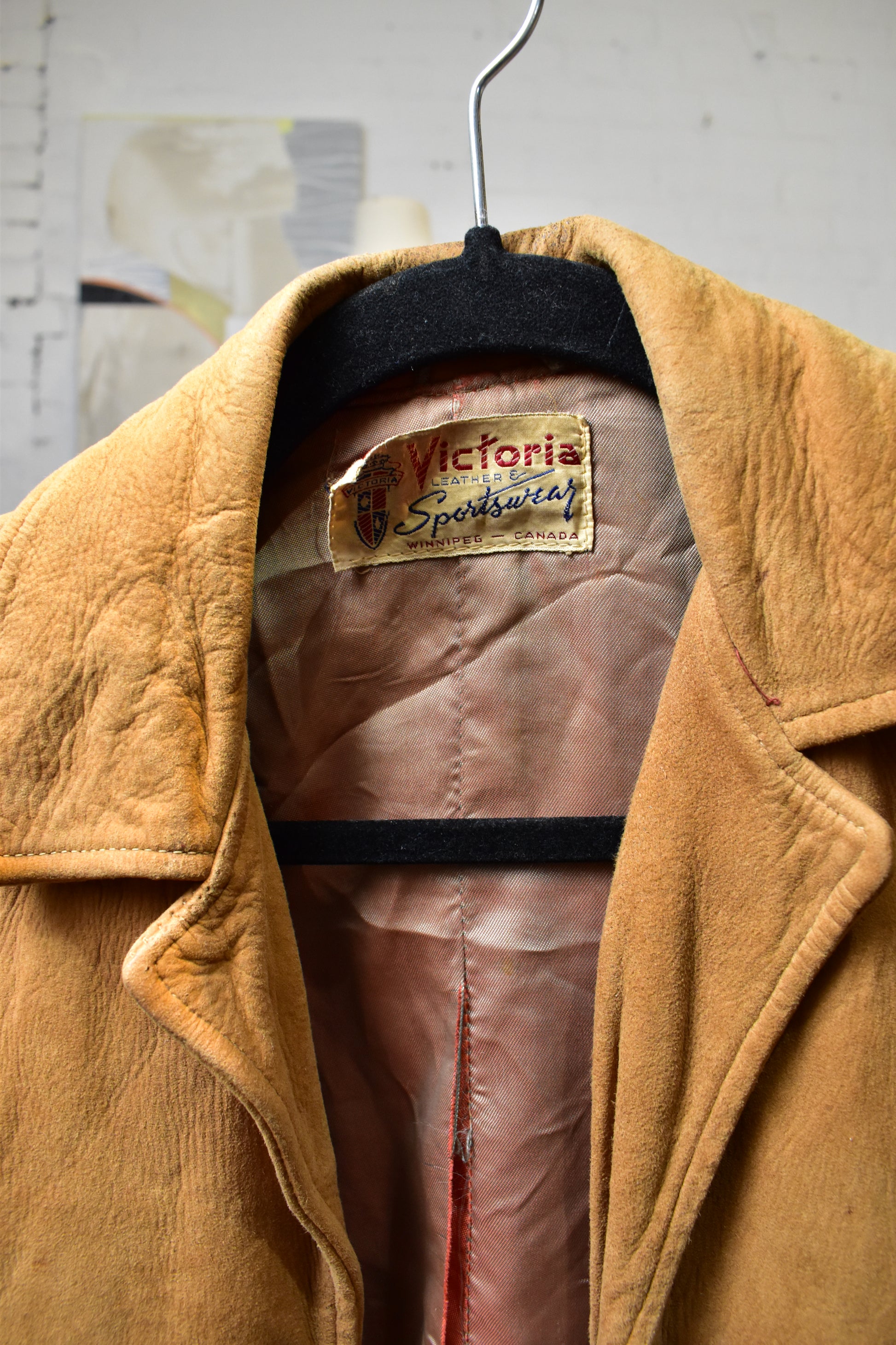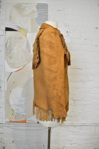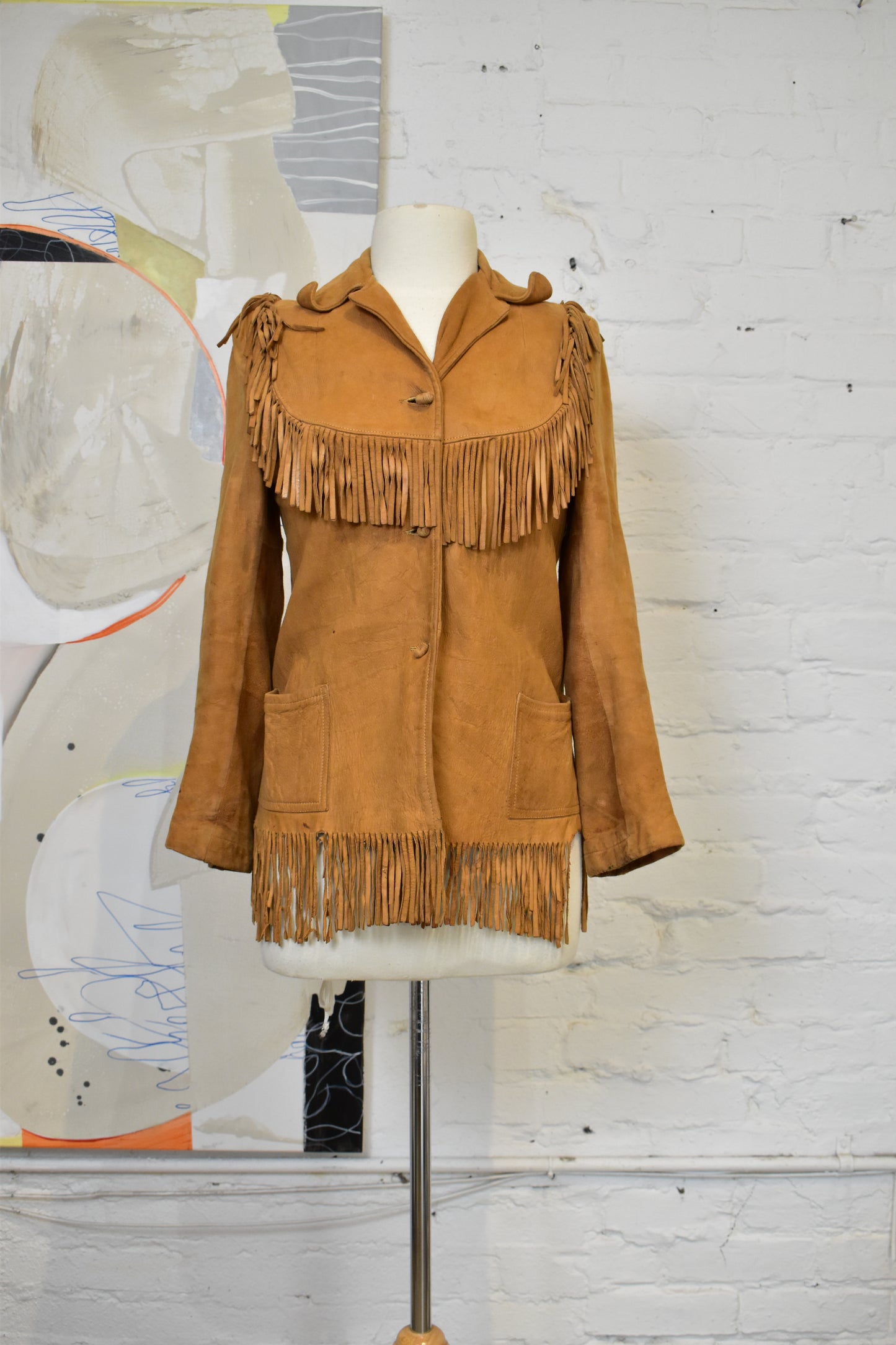 Vintage 50s/60s Suede Fringe Leather Jacket by Victoria Sportswear. Collared. Toggle Button Closure. Two Pockets. Lined.