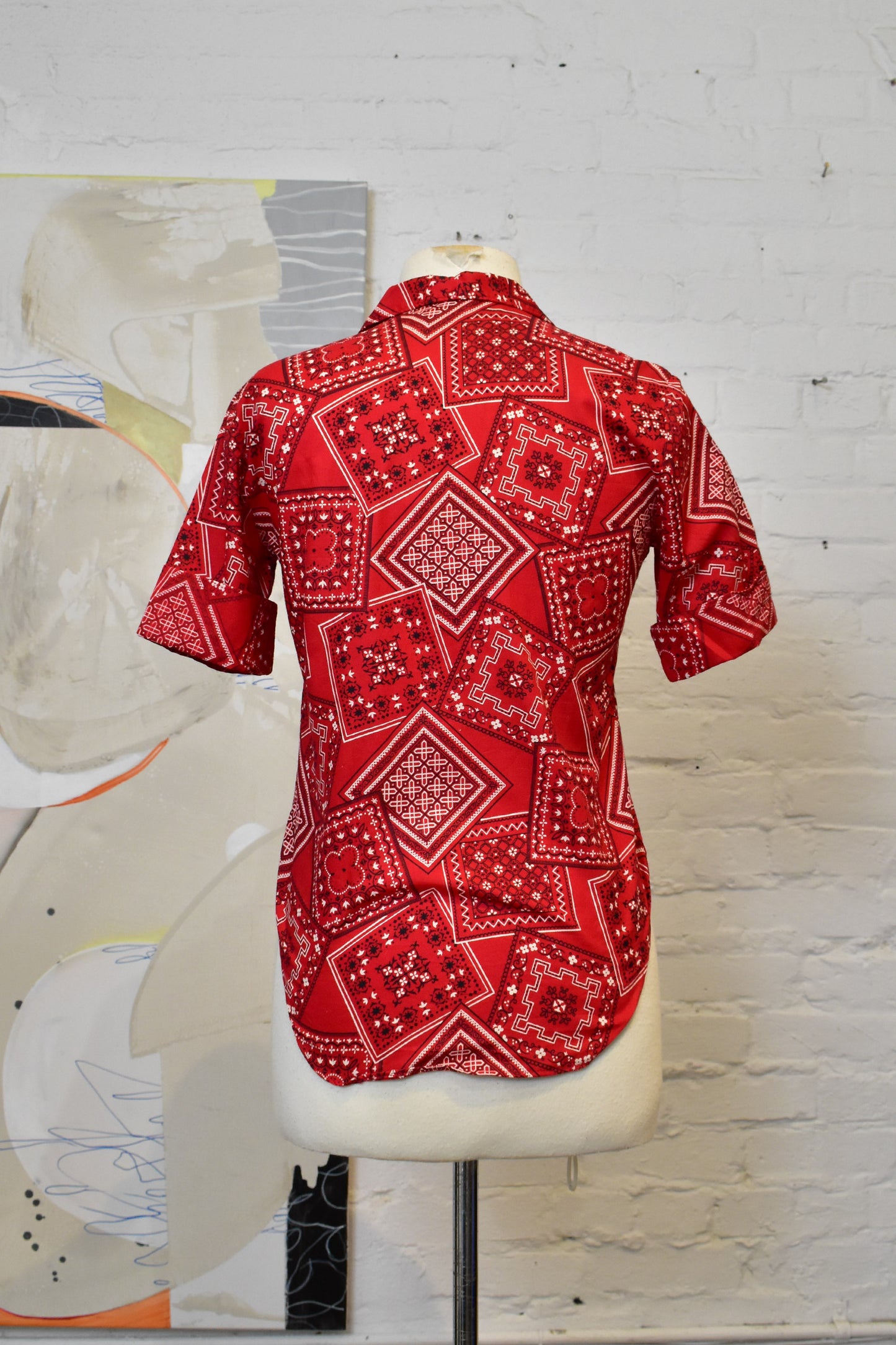 Vintage 60s/70s Carole Sue Red Bandana Print Short Sleeve Shirt