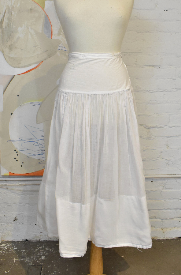 Vintage Petticoat Slip Skirt. White Gauzy Cotton. Side "Union" Zipper Closure - May have been added later. Sheer Along Middle.