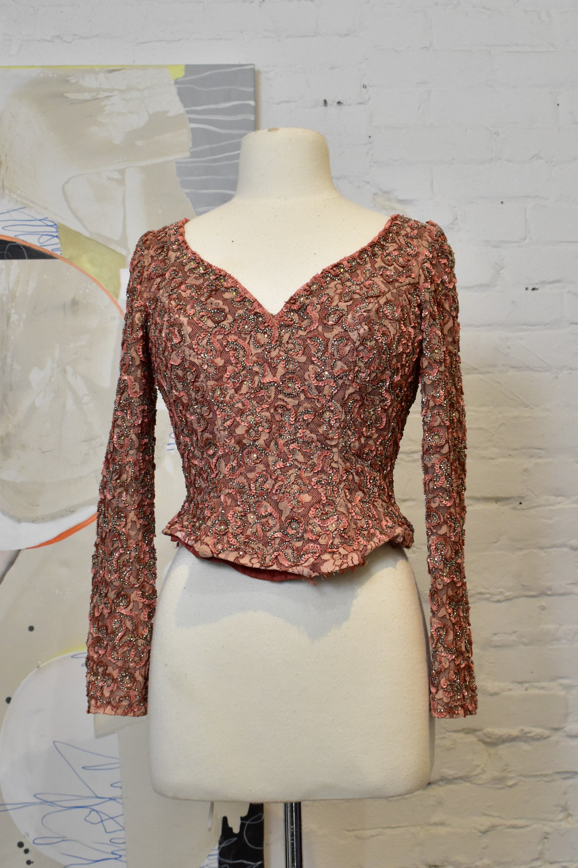 Vintage 1960s Mike Benet Sequined Lace Formal Top