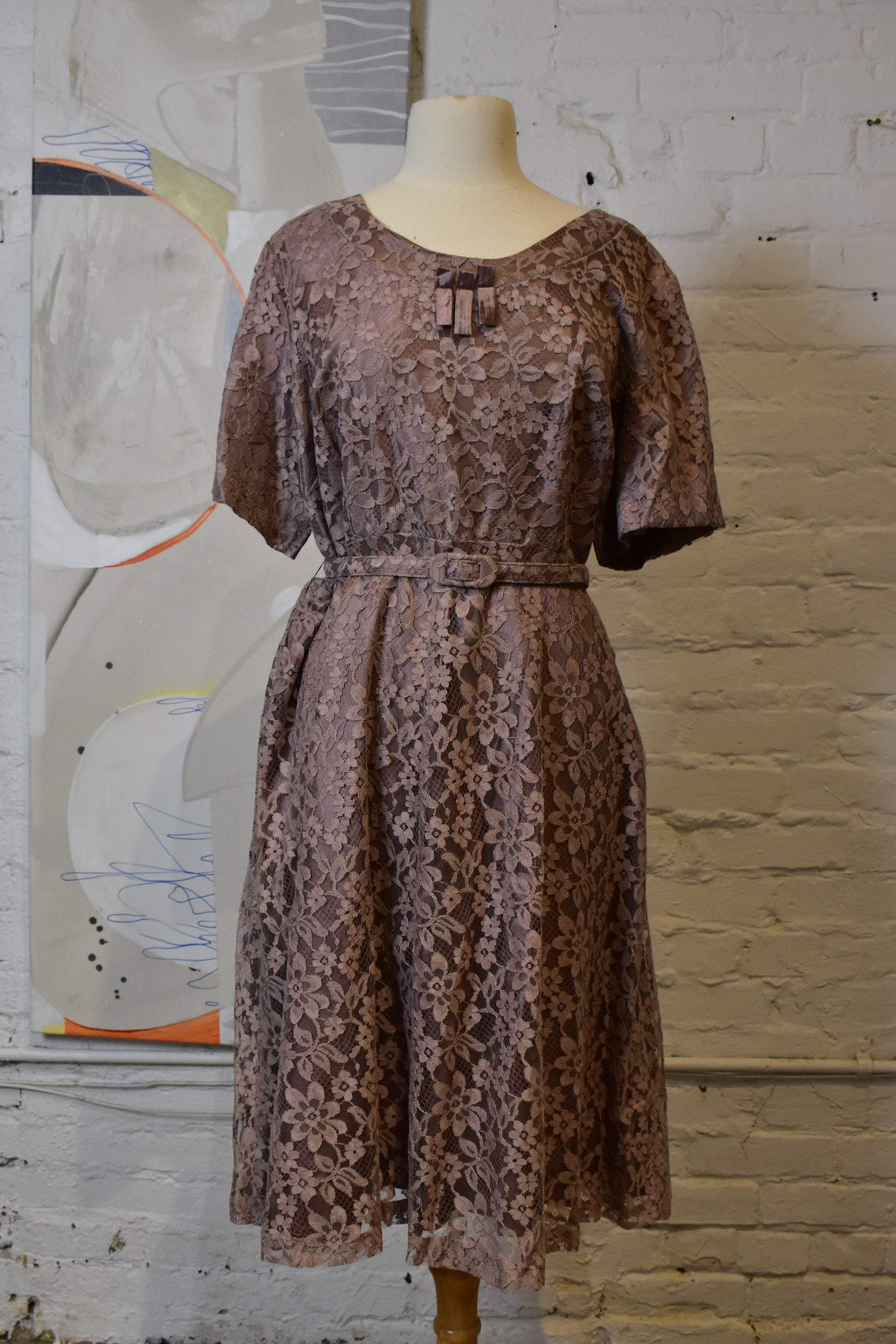 Vintage 1960s "Lane Bryant" Dusty Mauve Lace Dress Set