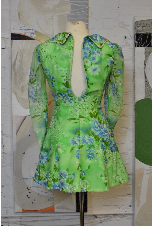Collared. Lined. Back zipper closure. Darted chest. No pockets. No tags.